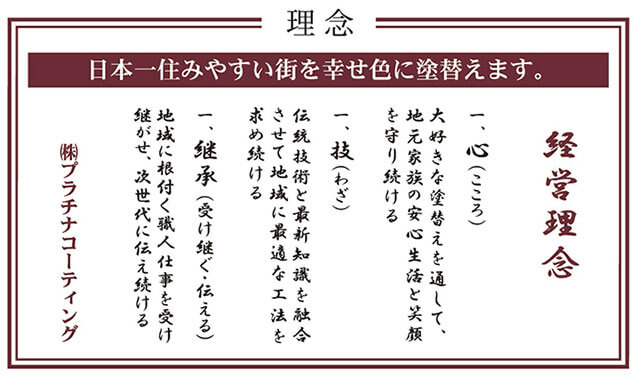 「正しい外装リフォームを通して地元家族の安心生活と笑顔を守り続ける」 これが、弊社の経営理念です。