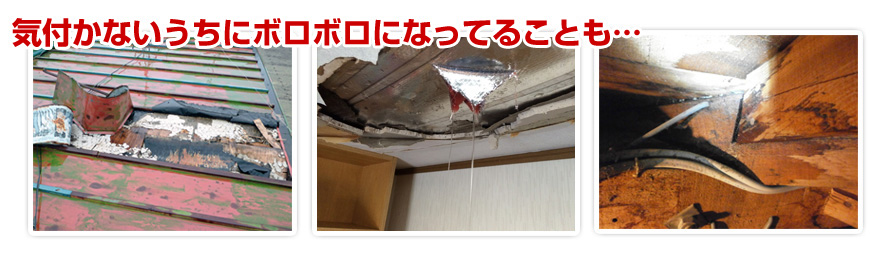 雨漏りの根本を直さないと、最悪の場合はお家が内部からボロボロになってしまうこともあります。