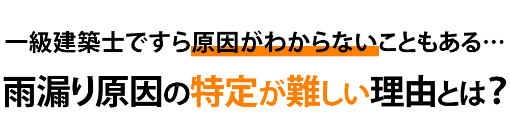 このような原因を突き止めるには、建築に関する全般的な知識がないとできません。一級建築士は"設計のプロ"かもしれませんが、"補修のプロ"ではありません。それが雨漏り補修の難しい点です。