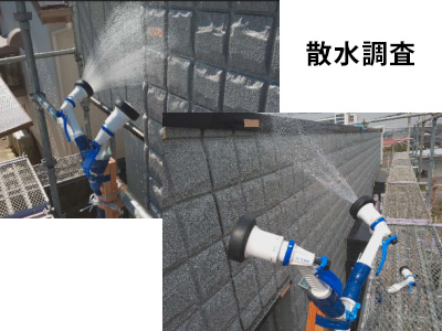 散水調査とは、目視調査で原因だと思われる箇所に、実際に水をかけ雨漏りを再現する調査です。